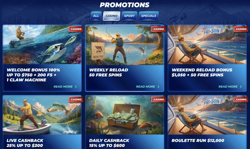Nous maintenons des promotions actives tout au long de la semaine, avec des règles d’accès claires. Weekly Reload offre 50 Tours Gratuits sur le premier dépôt de la semaine (du lundi au jeudi). Weekend Reload ajoute un bonus de 50 % jusqu’à 1 050 $ plus 50 Tours Gratuits, ce qui convient aux joueurs qui préfèrent des sessions plus longues le week-end. Weekly Cashback peut rembourser jusqu’à 15 % des pertes hebdomadaires dans la section Casino, selon les conditions de la promo au moment donné.